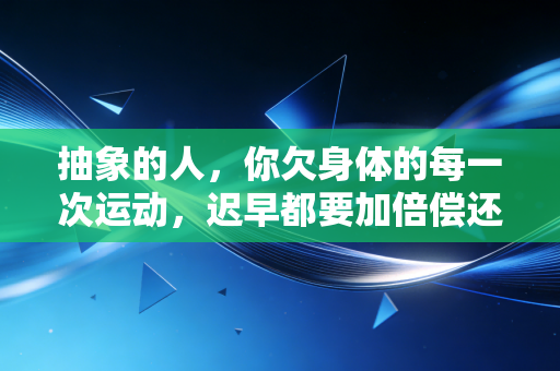 其实我们每个人都曾经是“抽象的人”,都有过把运动往后推的时刻,都有过“我还年轻我扛得住”的侥幸,但你要知道,身体是最公平的,你怎么对它,它就怎么对你,你现在每天多走10分钟,将来就可能少去一次医院;你现在每天多流一滴汗,将来就可能少吃一片药。 我写这篇文章不是要劝你都去做健身达人,也不是要给你制造年龄焦虑、健康焦虑,只是想提醒你:健康不是你失去的时候才想去珍惜的东西,是你现在就要好好维护的东西,那些你欠身体的运动,迟早都要还的,与其将来还给医院,不如现在就还给自己,从今天下楼多走100步开始,好不好?