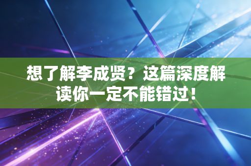 这李成贤具体咋回事,我这儿也没个准信儿。但通过这事儿,我倒是觉得,现在这信息爆炸的时代,咱自己得多个心眼儿,别啥都信。看到啥新闻,都得自己琢磨琢磨,这背后有没有啥道道。要不然,很容易就被人家带节奏。