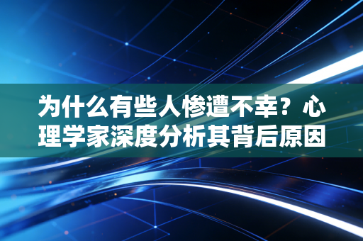 话说回来,我这人呐,平时就爱琢磨点事儿。最近看了不少新闻,也听了不少身边朋友的故事,就想着,为啥有些人总是那么倒霉,好像不幸的事儿就专门找上他们似的?我不是心理学家,但我喜欢自己瞎琢磨,也爱把这些思考记录下来,今天就来分享分享我的这些“深度分析”。